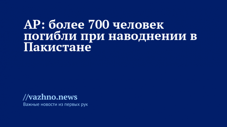 В результате сильных проливных дождей и последующего наводнения в Пакистане погибло свыше 700 человек. Об этом 21 августа информировало агентство Associated Press (AP).
