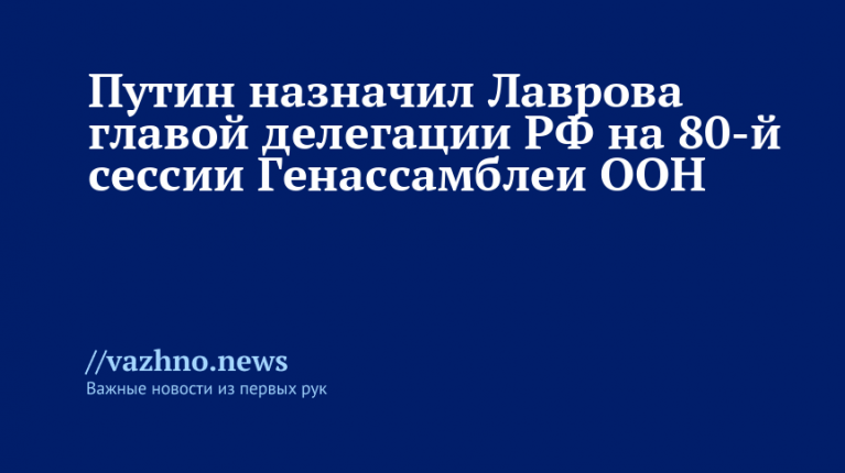 Путин назначил Лаврова главой делегации РФ на 80-й сессии ООН