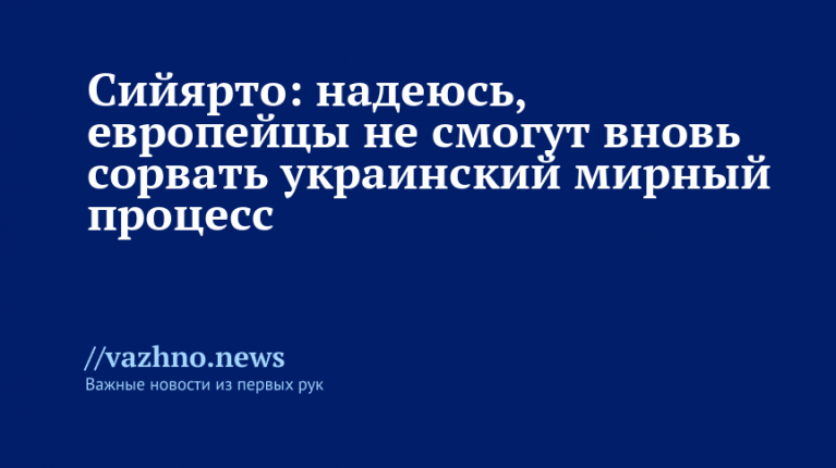 «Я надеюсь, что они преуспеют. Я уверен, что Дональд Трамп и Владимир Путин смогут привести этот процесс к мирному соглашению, поскольку это выгодно не только нам, но и всему миру», — отметил Сийярто во время подкаста Harcosok órája.