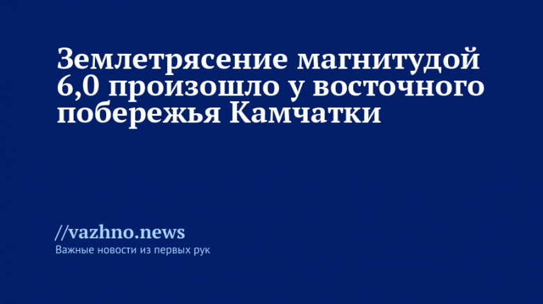 У восточного берега Камчатки зарегистрировали землетрясение с магнитудой 6,0. Об этом 21 августа проинформировал Telegram-канал Камчатского филиала ФИЦ Единой геофизической службы РАН.