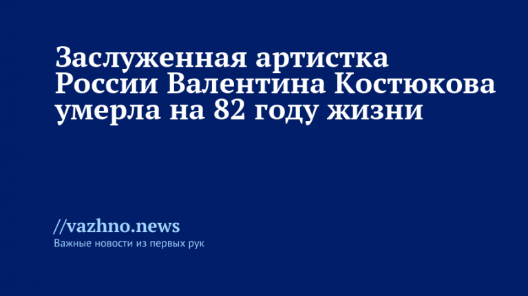 «Русский драматический театр им. М. Горького с глубоким сожалением сообщает, что 20 августа 2025 года на 82 году жизни ушла из жизни заслуженная артистка Российской Федерации Валентина Борисовна Костюкова», — говорится в сообщении, опубликованном на странице театра в социальной сети «ВКонтакте».