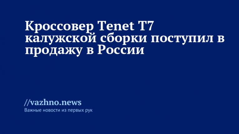 Компания Tenet сообщила о начале продаж своего кроссовера T7 на территории России. Данная модель стала первой для бренда и предлагается в двух вариантах комплектации по цене от 2,68 млн до 2,88 млн рублей. Информация была предоставлена «Тенет Рус» и поступила в распоряжение «Известий» 21 августа.