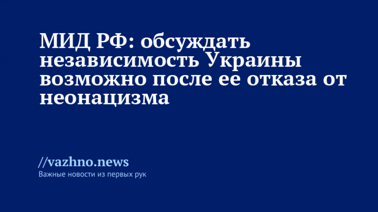 Обсуждать независимость Украины сегодня невозможно, поскольку Киев реализует неонацистскую политику, направленную на уничтожение всего русского. Такое заявление сделала 21 августа официальный представитель МИД РФ Мария Захарова.