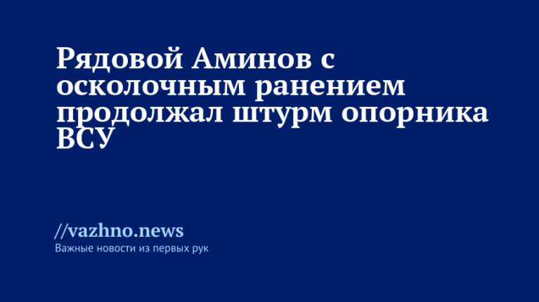 В Минобороны РФ также отметили действия гвардии рядового Владислава Аминова, который участвовал в штурме укрепленного опорного пункта противника в составе штурмовой группы.