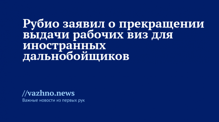 Госсекретарь США Марко Рубио 21 августа сообщил о временной приостановке выдачи рабочих виз для иностранных водителей коммерческого транспорта.