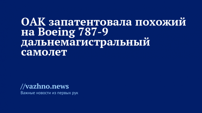 22 августа Объединенная авиастроительная корпорация (ПАО «ОАК») получила патент на широкофюзеляжный дальнемагистральный самолет, который по своему виду напоминает Boeing 787-9 Dreamliner.