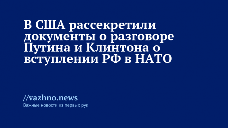 В 2000 году президент России Владимир Путин и бывший президент США Билл Клинтон вели обсуждение возможного вступления России в НАТО. Организация National Security Archive 21 августа опубликовала соответствующие документы.