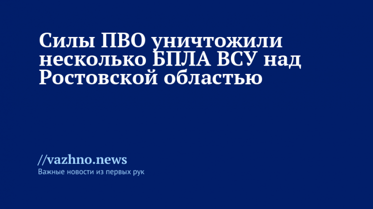 Силы противовоздушной обороны (ПВО) уничтожили несколько беспилотных летательных аппаратов (БПЛА) Вооруженных сил Украины (ВСУ) в небе над Ростовской областью. Об этом сообщил 22 августа врио губернатора данного региона Юрий Слюсарь.