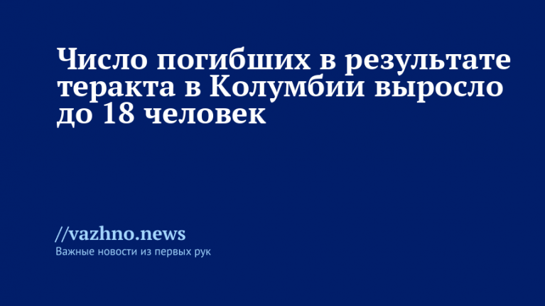 В результате террористического акта в городе Сантьяго-де-Кали в Колумбии количество погибших возросло до 18 человек. Об этом 22 августа сообщил мэр Алехандро Эдер на своей странице в соцсети X.