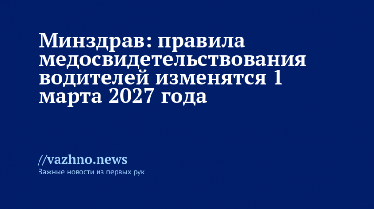 В официальном Telegram-канале ведомства отметили: «Изменения в порядок организации медицинского освидетельствования водителей вступят в силу с 1 марта 2027 года».