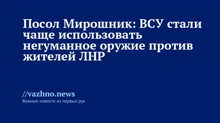 Вооруженные силы Украины (ВСУ) в последнее время все чаще применяют негуманное оружие, нанося удары по жителям прифронтовых районов Луганской Народной Республики (ЛНР). Об этом 22 августа сообщил посол МИД России по особым поручениям, отвечающий за расследование преступлений киевского режима, Родион Мирошник.