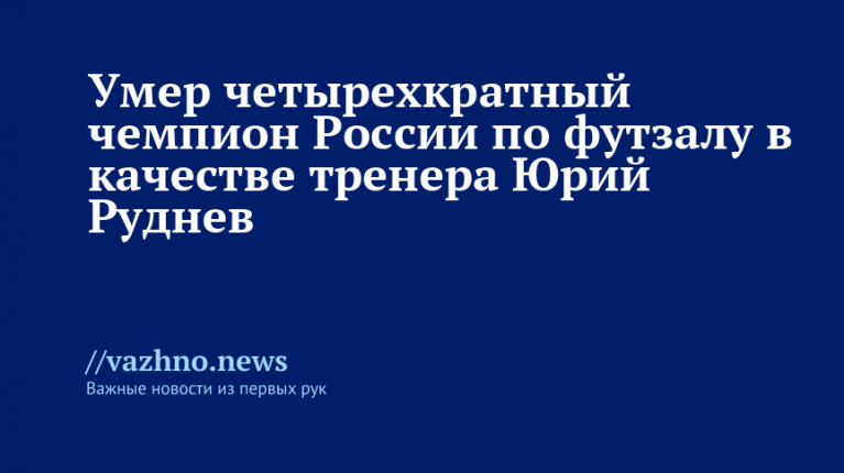 В возрасте 70 лет скончался российский тренер по футзалу Юрий Руднев. Об этом 22 августа проинформировала пресс-служба суперлиги России по футзалу.
