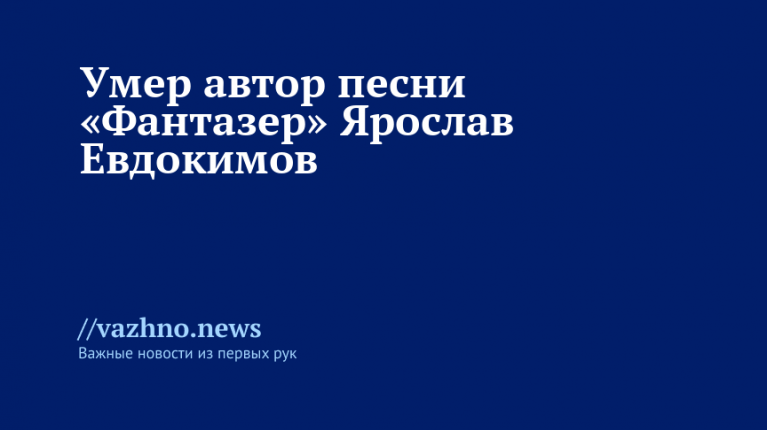 На 78-м году жизни ушел из жизни автор знаменитой песни «Фантазер» Ярослав Евдокимов. Сообщение о кончине артиста появилось 22 августа на странице его официальной группы в социальной сети «ВКонтакте».