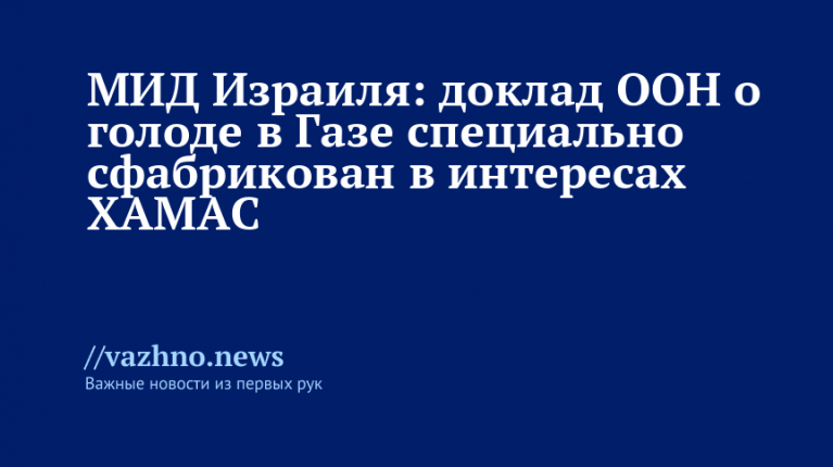 По заявлению Министерства иностранных дел Израиля 22 августа, доклад Организации объединенных наций (ООН) о критическом голоде в секторе Газа был специально сфабрикован в интересах движения ХАМАС.