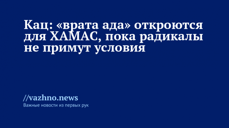Министр обороны Израиля Исраэль Кац опубликовал 22 августа в социальной сети X (ранее Twitter) заявление о том, что для палестинского радикального движения ХАМАС в секторе Газа откроются «врата ада», если оно откажется принять условия Израиля по прекращению огня.