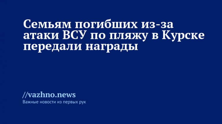 Александр Хинштейн, временно исполняющий обязанности губернатора Курской области, 22 августа вручил региональные награды семьям погибших в результате атаки Вооруженных сил Украины (ВСУ) 8 июля на пляж в Курске.