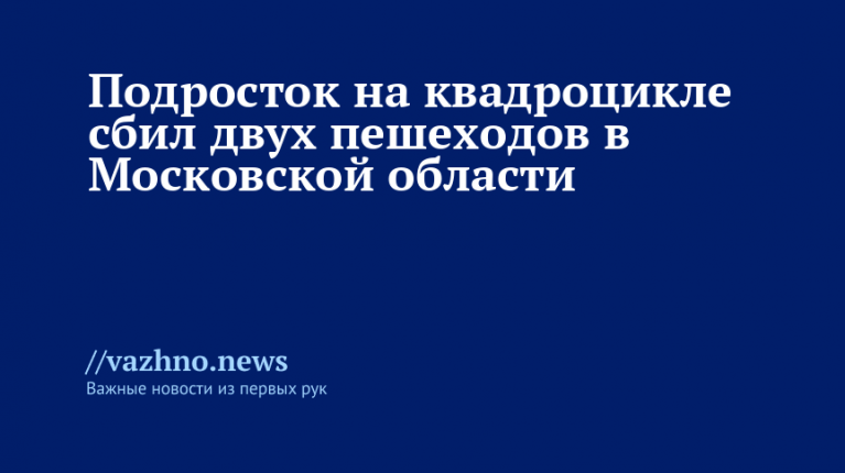 В поселке Бакеево на улице Молодежной в Московской области 13-летний мальчик на квадроцикле сбил двух пешеходов. Об этом 22 августа сообщили в пресс-службе главного управления МВД России по региону.