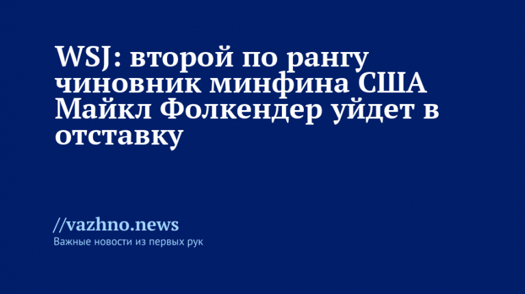 «Майкл Фолкендер, являющийся вторым по рангу чиновником в министерстве финансов, покидает администрацию менее чем спустя пять месяцев после подтверждения его кандидатуры Сенатом», — говорится в статье.