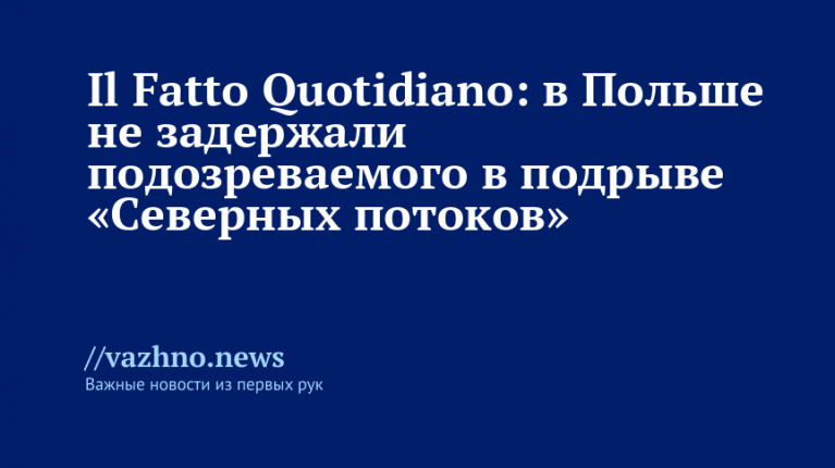 В Польше не удалось задержать подозреваемого в взрыве «Северных потоков» по имени Владимир Щ. Об этом 22 августа сообщает итальянская газета Il Fatto Quotidiano.