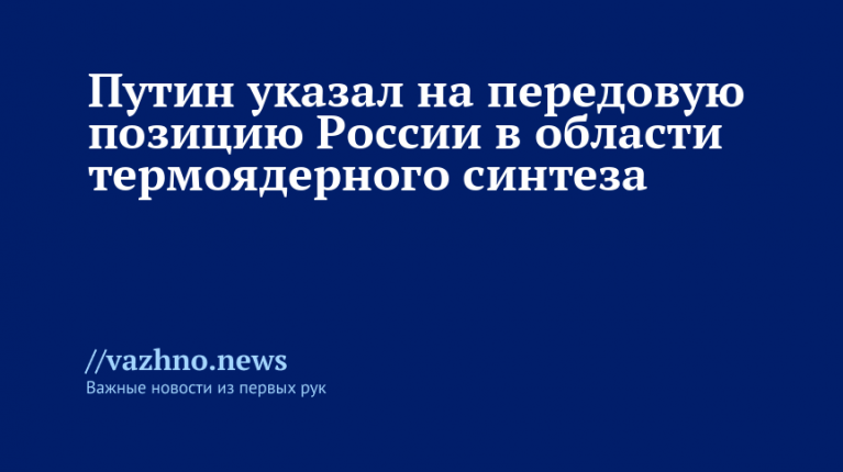 Россия лидирует в термоядерном синтезе и квантовых технологиях по словам Путина