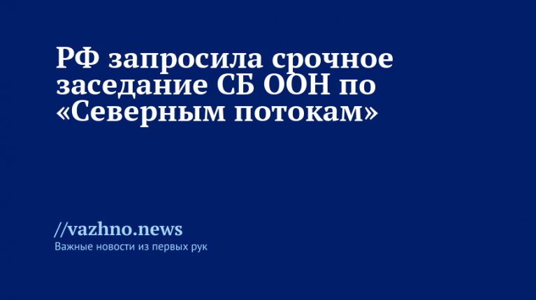 Россия обратилась с просьбой провести экстренное заседание Совета безопасности (СБ) Организации Объединенных Наций (ООН) по вопросу газопроводов «Северный поток». Об этом 23 августа сообщил исполняющий обязанности постоянного представителя РФ при ООН Дмитрий Полянский в своем Telegram-канале.
