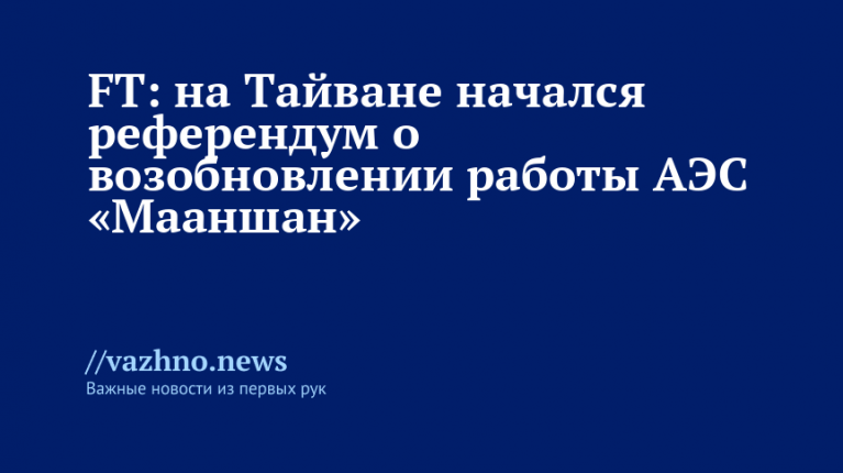 На Тайване 23 августа стартовал референдум, посвященный возобновлению эксплуатации третьей по величине атомной электростанции (АЭС) на острове — «Мааншан». Об этом сообщает местное издание Focus Taiwan (FT).