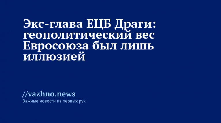 Геополитическая значимость Европейского союза (ЕС) оказалась иллюзорной и базировалась преимущественно на экономических показателях, заявил 22 августа бывший председатель Европейского центрального банка (ЕЦБ) и экс-премьер Италии Марио Драги.