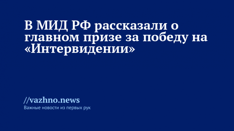 Директор департамента по многостороннему гуманитарному сотрудничеству и культурным связям МИД России Александр Алимов сообщил, что денежная награда за победу в международном музыкальном конкурсе «Интервидение» составит 30 млн рублей.