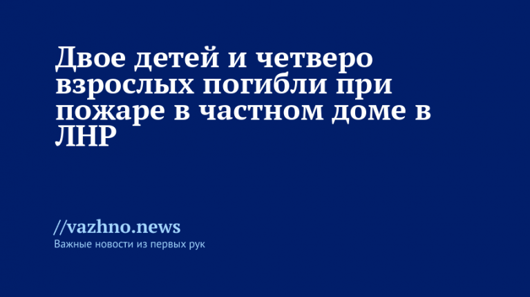 В Луганской Народной Республике (ЛНР) в результате возгорания в частном доме погибли шесть человек, в том числе двое детей. Об этом сообщили представители МЧС России 23 августа.