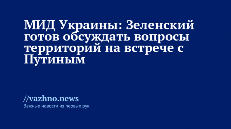Зеленский готов обсудить территориальные вопросы на встрече с Путиным – МИД Украины