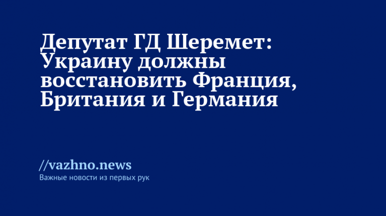 «Восстановление поствоенной Украины должно происходить за счет Британии, Германии и Франции, как наиболее коварных бенефициаров и спонсоров украинского конфликта», — отметил он в беседе с агентством «РИА Новости».
