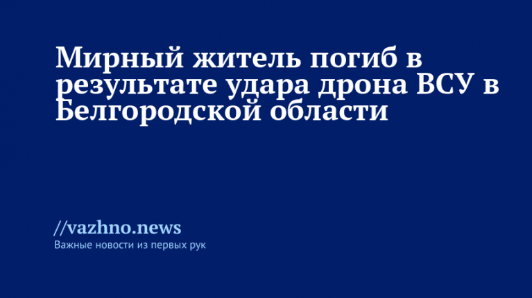 В селе Репяховка, расположенном в Белгородской области, в результате удара беспилотника Вооруженных сил Украины погиб мирный житель. Об этом 23 августа сообщил губернатор региона Вячеслав Гладков.