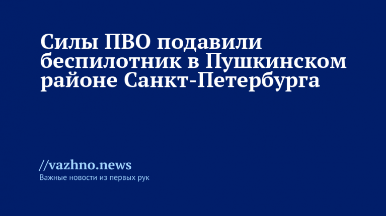 ПВО уничтожили беспилотник в Пушкинском районе Санкт-Петербурга