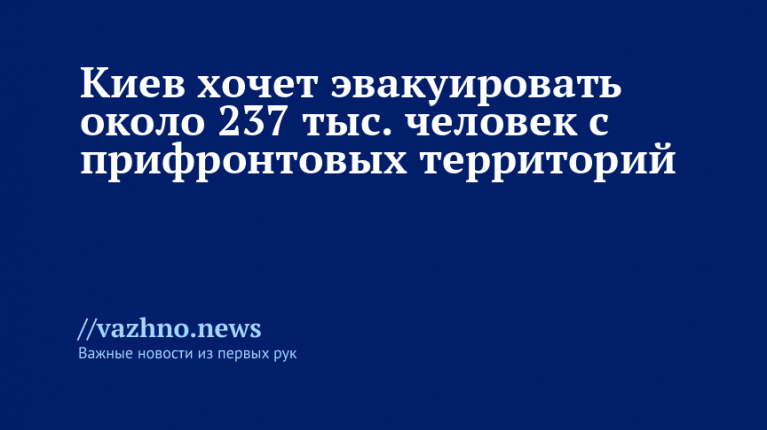 Правительство Украины собирается эвакуировать примерно 237 тысяч граждан, которые проживают в зонах, близких к линии фронта. Об этом 23 августа сообщили в Telegram-канале министерства развития общин и территорий страны.