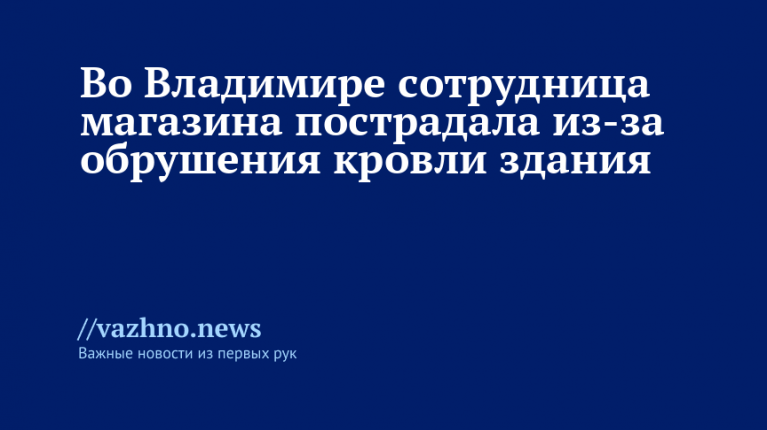 Во Владимире произошел инцидент: сотрудница магазина получила травмы из-за падения части кровли здания. Об этом событии 23 августа рассказали в Telegram-канале администрации города.