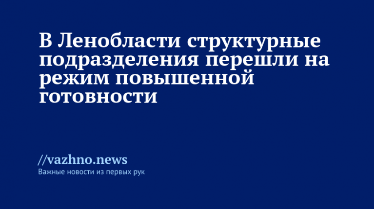 Структурные подразделения Ленинградской области перешли в режим повышенной готовности. Об этом 23 августа в своем Telegram-канале проинформировал глава региона Александр Дрозденко.