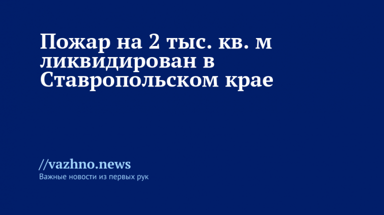 Сотрудники Министерства по чрезвычайным ситуациям России смогли ликвидировать пожар, охвативший площадь в 2 тысячи квадратных метров в Ставропольском крае. Об этом было сообщено 23 августа в Telegram-канале ведомства.