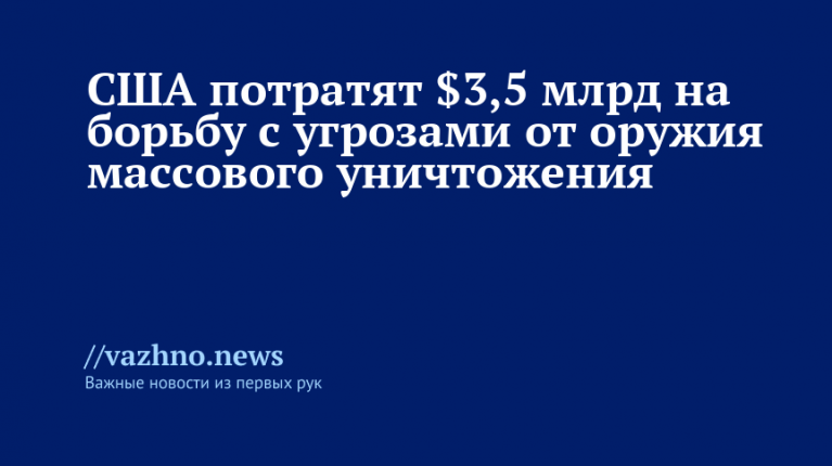 Соединённые Штаты планируют выделить $3,5 млрд на меры по уменьшению рисков, связанных с оружием массового уничтожения, своих союзников, как сообщили 22 августа на официальном сайте Пентагона.