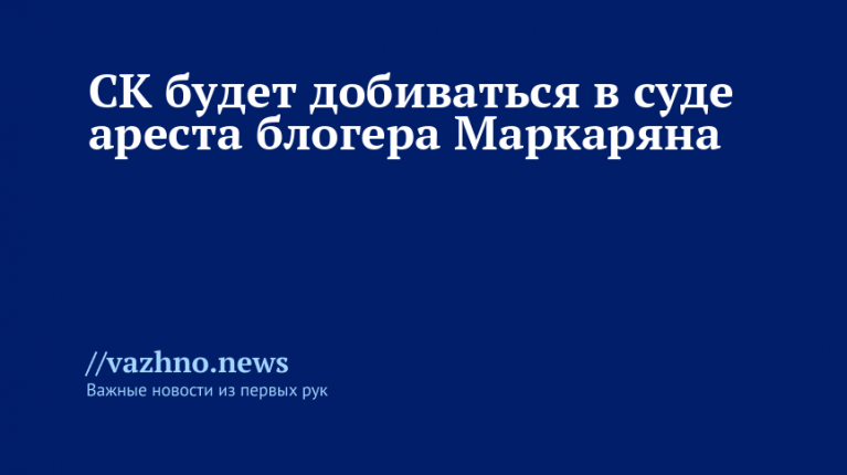 «В понедельник следствие намерено подать ходатайство в Таганский районный суд города Москвы об избрании меры пресечения в виде заключения под стражу в отношении Маркаряна», — говорится в официальном сообщении.