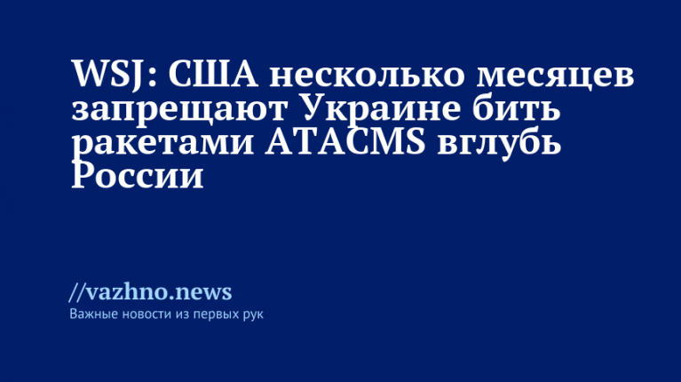 «По данным официальных лиц, процедура высокого уровня одобрения, о которой не было публично объявлено, с конца весны запрещает Украине запускать американские тактические ракетные комплексы большой дальности (ATACMS) по российским целям. По крайней мере один раз Украина пыталась нанести удар ATCMS по территории России, но получила запрет, сообщили два информатора», — говорится в публикации.