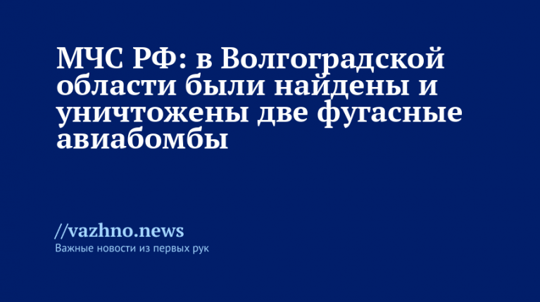 «В ходе земляных работ на территории Волгоградской области выявили две авиабомбы ФАБ-100, относящиеся к временам Великой Отечественной войны», — говорится в сообщении в Telegram-канале МЧС РФ.