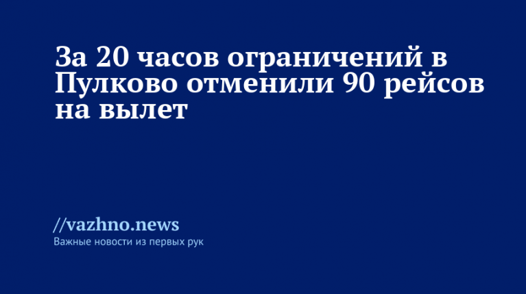 В аэропорту Пулково в Санкт-Петербурге за период около 20 часов ограничений отменили 90 вылетов, а примерно 80 рейсов задержали более чем на 2 часа. Об этом 24 августа сообщила пресс-служба аэропорта в своем Telegram-канале.