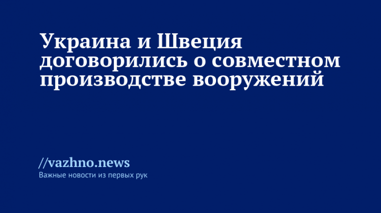 Украина и Швеция достигли соглашения о совместном выпуске оборонной продукции на территории обеих стран. Об этом 24 августа сообщил министр обороны Украины Денис Шмыгаль.
