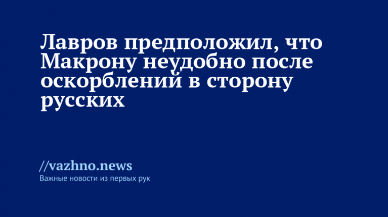 Министр иностранных дел России Сергей Лавров выразил надежду, что президент Франции Эммануэль Макрон чувствует неловкость после того, как сравнил Россию с хищником и людоедом. Об этом 24 августа он сообщил журналисту Павлу Зарубину, фрагмент интервью опубликован в Telegram-канале МИД РФ.