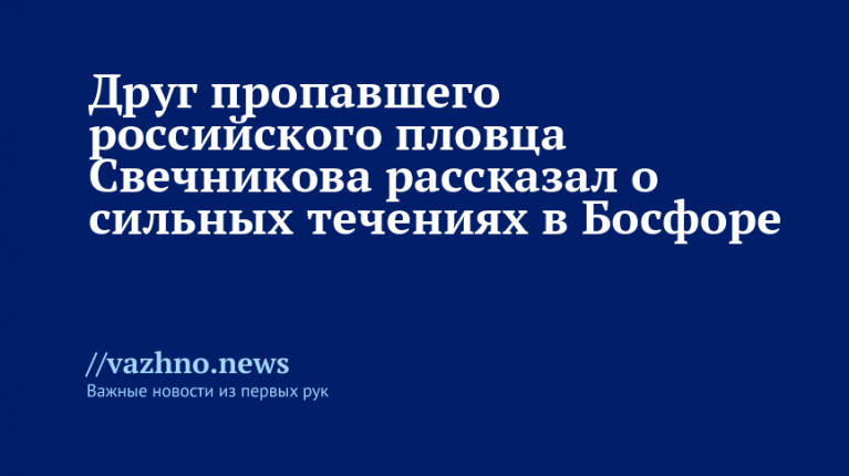 Плавание через пролив Босфор связано с высокими рисками из-за мощных подводных течений. Об этом 25 августа сообщил друг пропавшего во время заплыва российского спортсмена Николая Свечникова в интервью «Известиям».