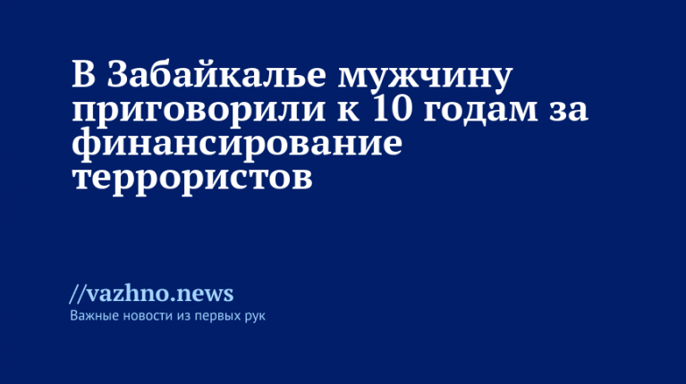 В Забайкалье осудили мужчину на 10 лет за финансирование террористов