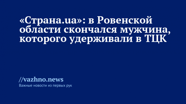 В Ровенской области умер мужчина, которого удерживали в ТЦК – «Страна.ua»