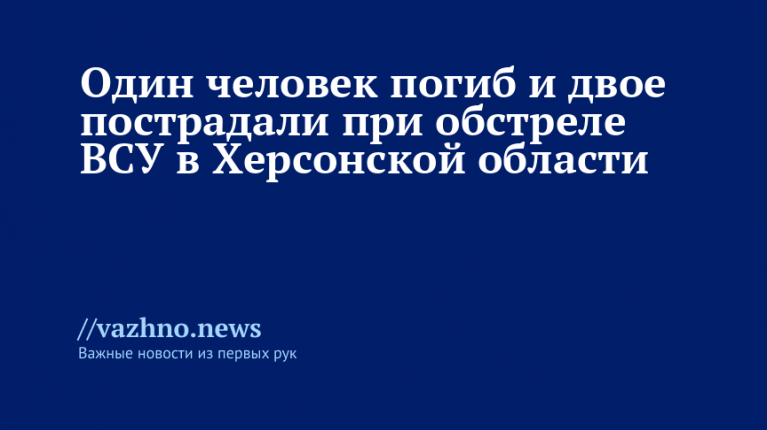 В Херсонской области в результате обстрела, проведенного Вооруженными силами Украины (ВСУ), погиб один человек, а еще двое получили ранения. Об этом 25 августа сообщил глава региона Владимир Сальдо.
