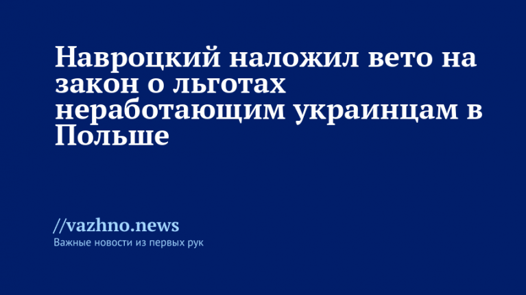 Навроцкий наложил вето на закон о льготах для неработающих украинцев в Польше