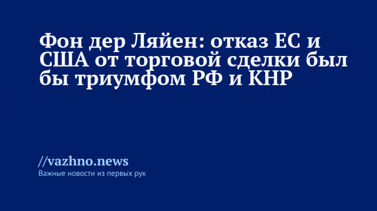Евросоюз (ЕС) заключил торговое соглашение с США, так как отказ от сделки мог бы стать, по мнению Еврокомиссии, «праздником для Москвы и Пекина». Об этом 24 августа сообщила глава Европейской комиссии Урсула фон дер Ляйен в интервью изданию Frankfurter Allgemeine Zeitung.